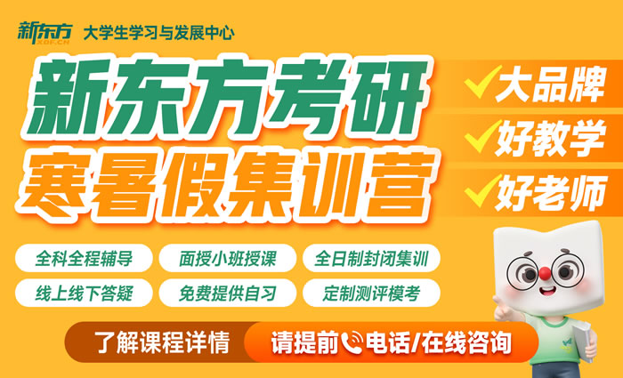 1、考研寒暑假集训营是新东方推出的一套集【课程和课后服务于一体】的长线式浸泡式的考研备考辅导方案,主要针对大二-大四以及往届需要参加当年研究生入学考试备考的各个专业的考研学子。