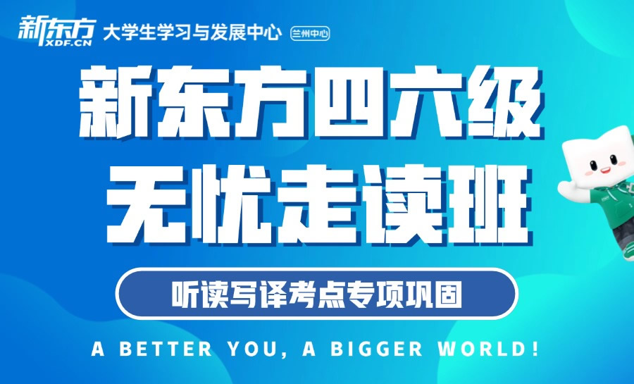 兰州新东方英语四六级无忧计划走读培训班提供全程个性化四六级英语复习辅导方案。新东方英语四六级辅导拥有实力四六级老师针对四六级学员考试的听力、阅读、翻译、写作、口语板块讲授有效提分方法,提供讲练结合的方式,全程都有学习管理师监督管理学习全过程的。