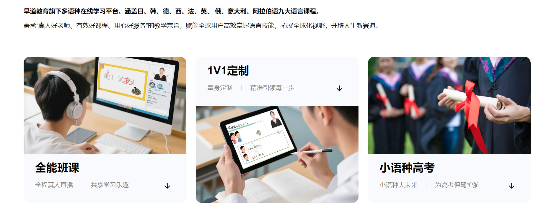 主要业务包括高考小语种提分、智慧校园解决方案、 生涯规划等。