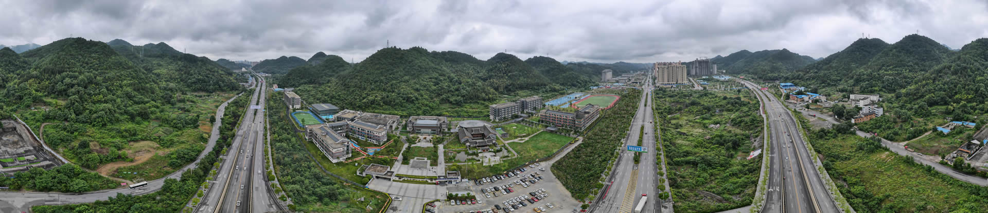 学校依山而建,三大湿地公园环绕。